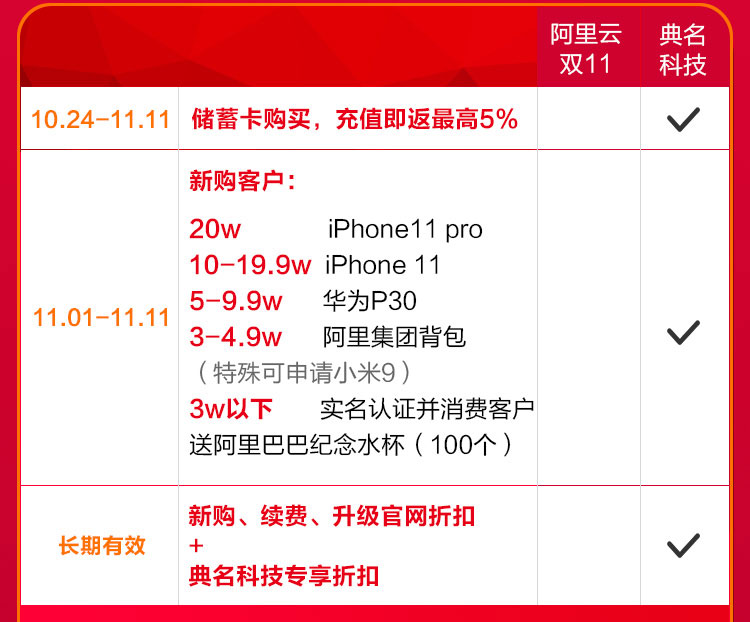 只要是通过【凯铧互联科技】购买阿里云产品,立享凯铧互联科技专属折扣(叠加官网折扣,可同享哟)+充值满返,最高可达5%+iPhone11、iPhone11 pro、华为手机等豪礼免费送!